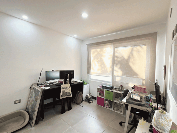 – Second level: TV room or office, master bedroom (with walk-in-closet, a full bathroom and balcony) and two secondary bedrooms with a shared full bathroom.