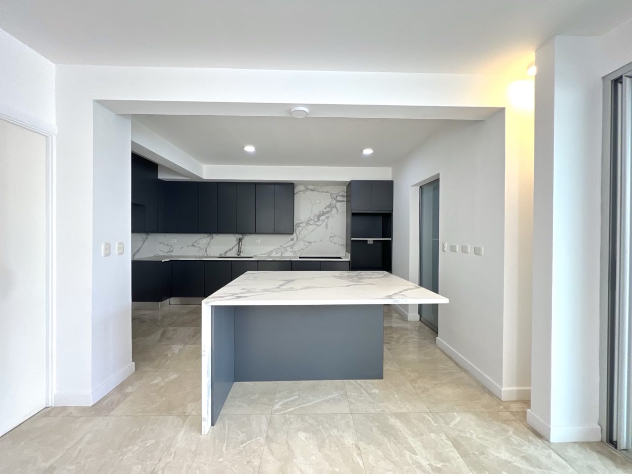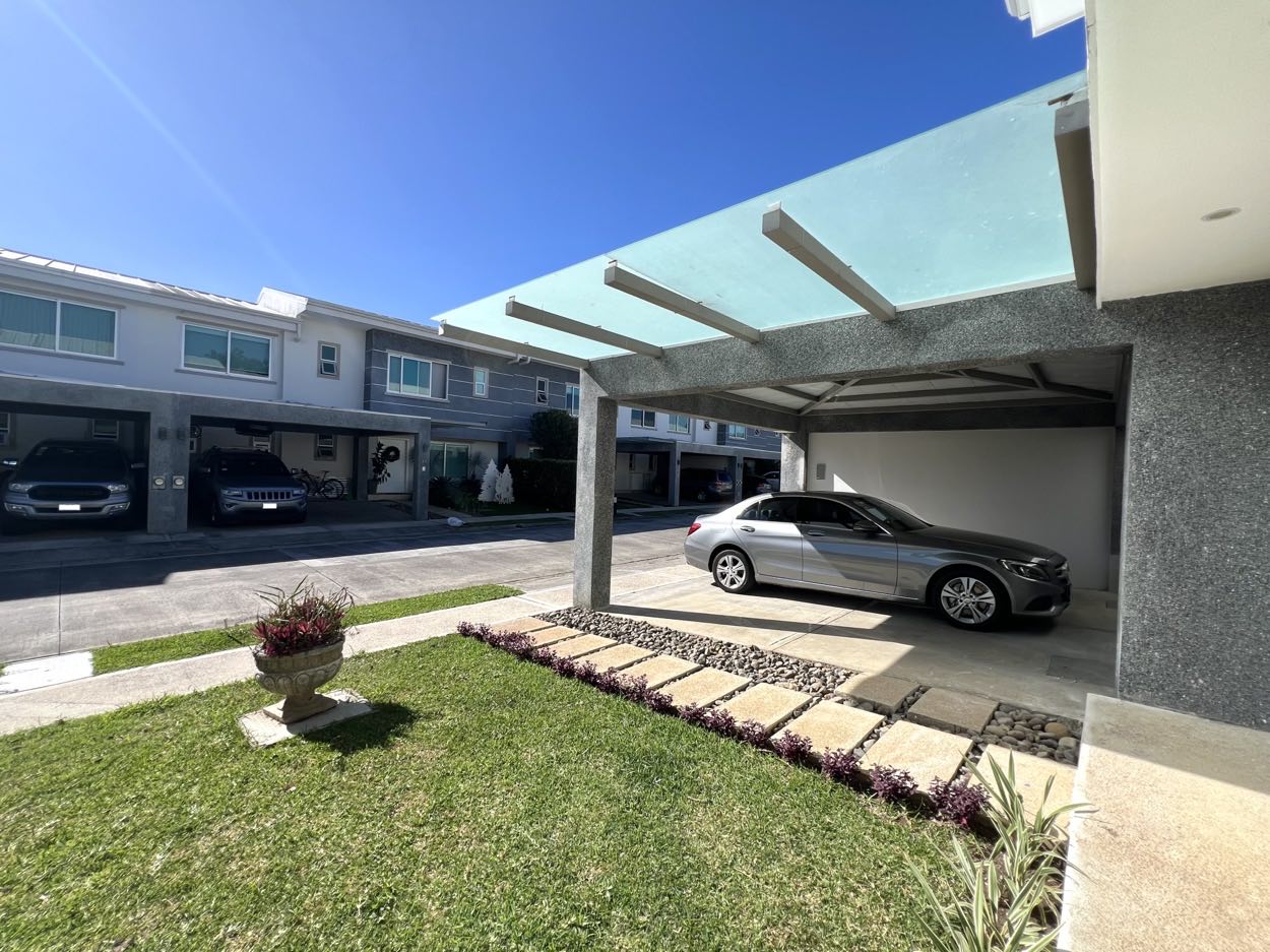 – First Level: Guest half bathroom, living room, dining room, kitchen (with island and pantry), terrace, garden, a generously sized office, service room with its own full bathroom, laundry room, and covered garage for two vehicles (with space for a third).